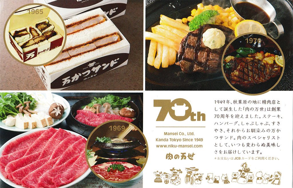 肉の万世70周年ということで、JCBからハガキが届きました。