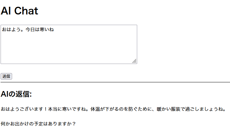 入力テキストをcurlでOllamaに渡すだけのシンプルなフォームを作成しました。