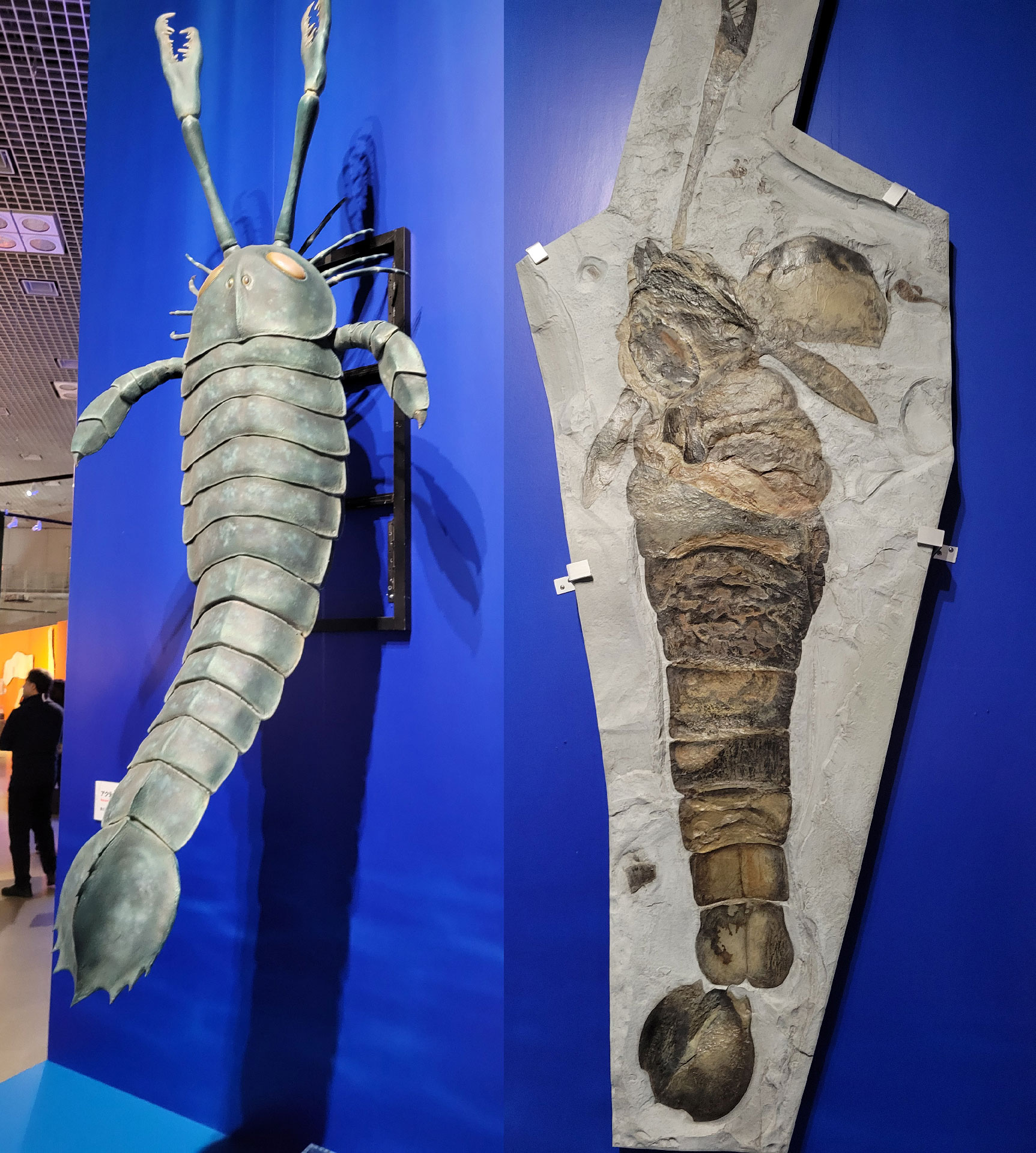 アクティラムスという2m以上あるウミサソリ。大きいね。2本だけ後ろ向きに付いている遊泳脚がキュート。