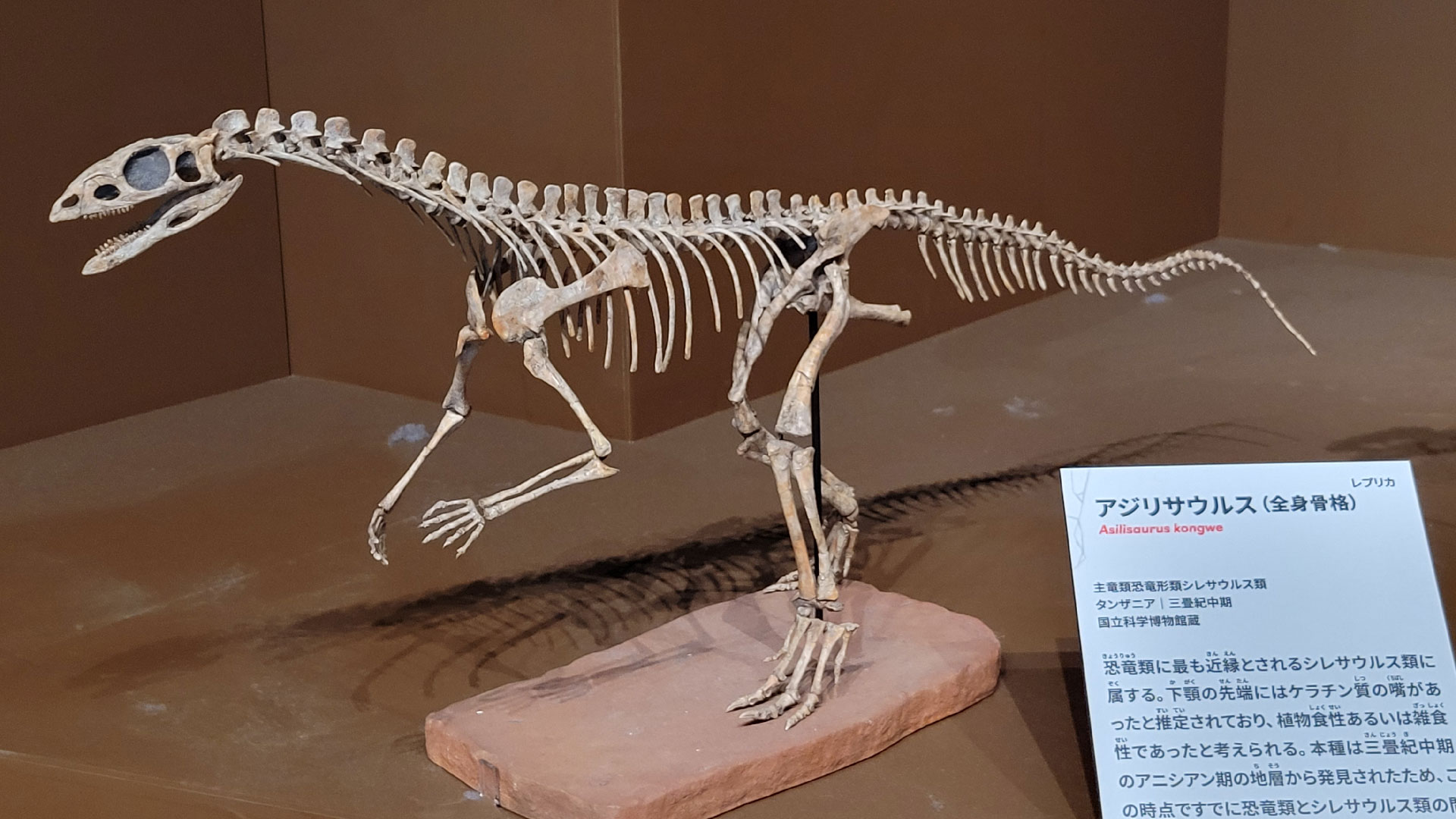 アジリサウルスは小さい恐竜に見えるけど恐竜ではないらしい。共通の祖先から枝分かれした爬虫類です。