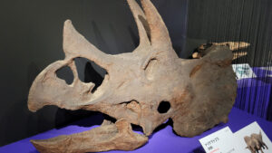 トリケラトプスも有名ですね。頭骨だけでもデカすぎて写真に収まらなかった。