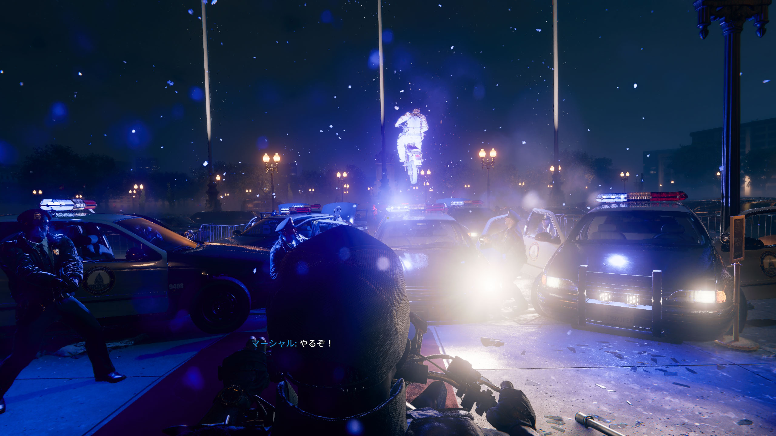 アドラーは救出できたけど、そのタイミングでパーティーにパンテオン襲撃。なぜか犯人に仕立て上げられたケースたちはバイクで警察の包囲網を突破しました。