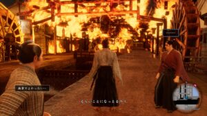 放火を指示した参謀伊東甲子太郎を斬ろうとするも、伊東は隊長2人と隊士のほとんどを連れて脱退、御陵衛士となる。史実だと斎藤一もスパイとして御陵衛士に行くんだけど、本作では行かなかったね。